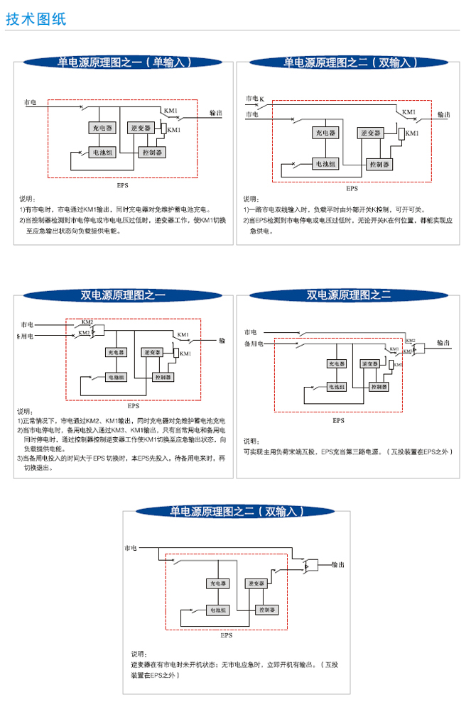 ● 應(yīng)急電源是一種可為消防標(biāo)志燈、照明燈等負(fù)載提供第二路應(yīng)急供電的備用電源裝置。