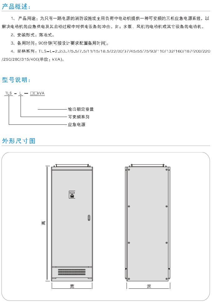 ● 市電中斷或電壓超出規(guī)定范圍時自動提供 220V/380V/50HZ三相交流應(yīng)急供電